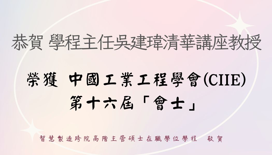 【恭賀】學程主任 吳建瑋清華講座教授 榮獲 中國工業工程學會(CIIE) 第十六屆「會士」 🥳🥳